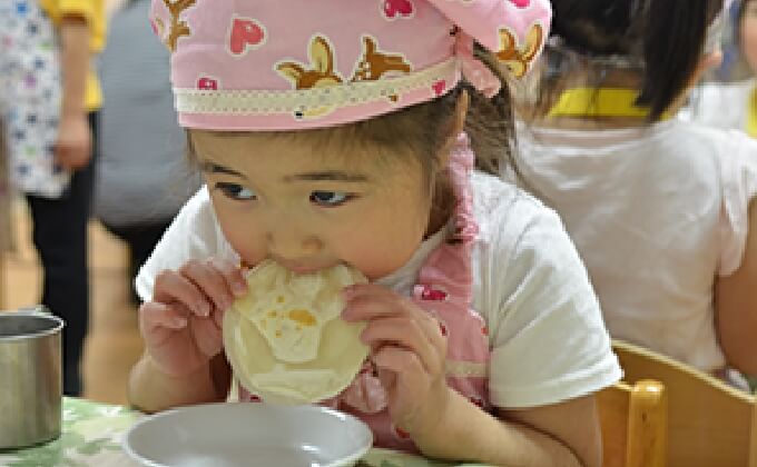 幼児クラスを中心に、季節の野菜やメニューを取り入れながら実施しています。