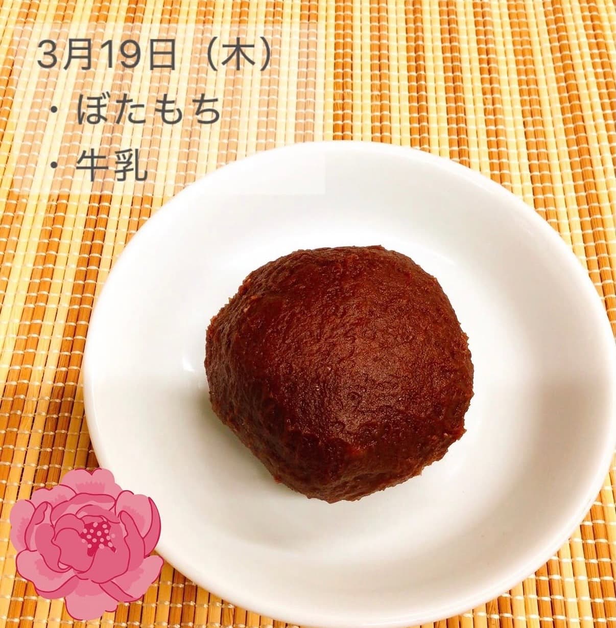 春のお彼岸ということで、ぼたもちをおやつで提供しました。